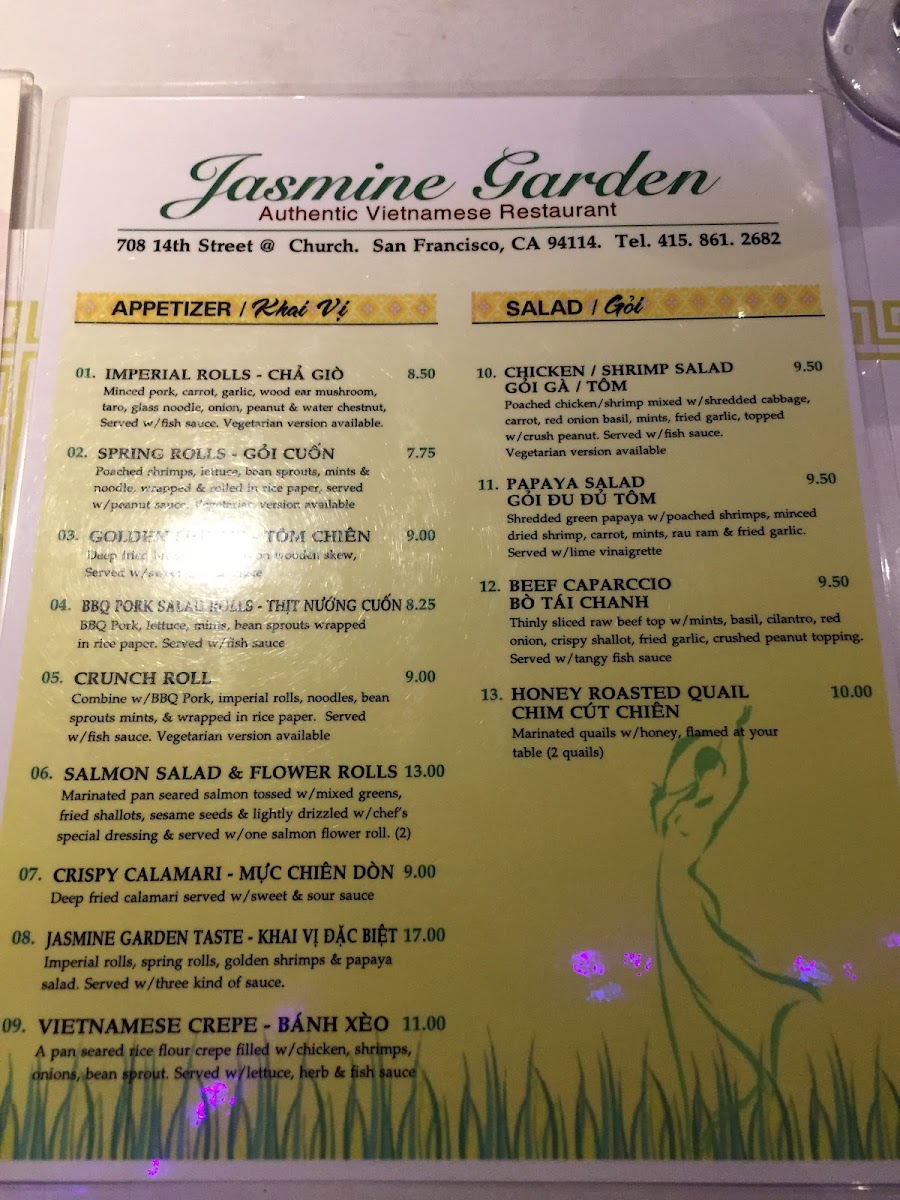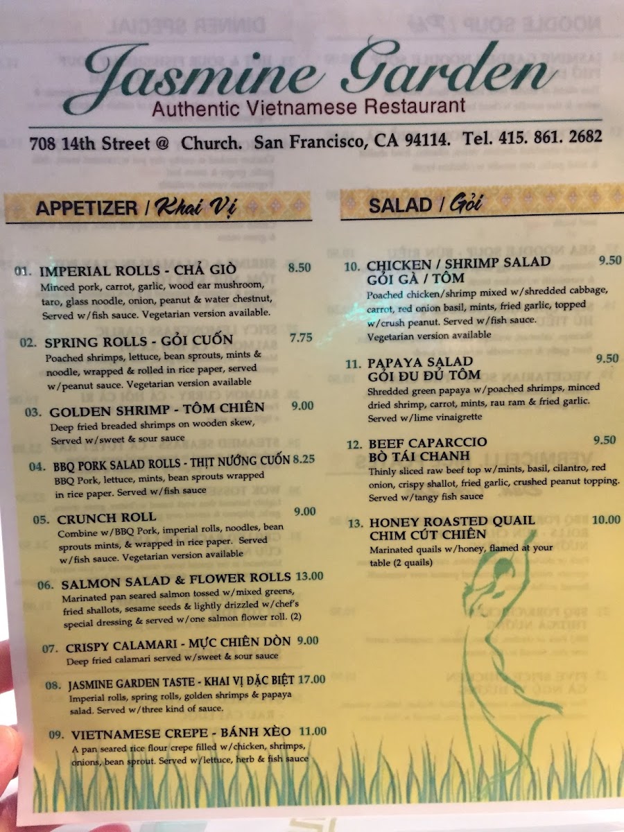 Step into Jasmine Garden, an exquisite Vietnamese restaurant nestled in the heart of San Francisco at 708 14th St. Known for its authentic flavors and heartfelt service, this dining gem has captured the taste buds of locals and travelers alike. From the moment you enter, you are greeted by an inviting atmosphere radiating warmth and a sense of community, making it feel like a comforting retreat from the bustling city outside.